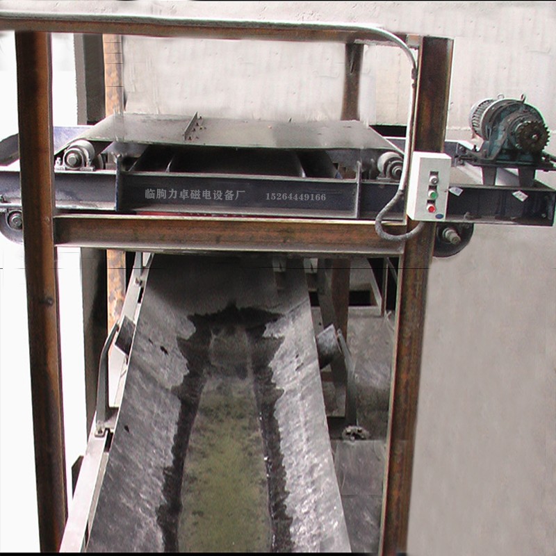 永磁除鐵器工作原理: 當顆粒狀物料經過永磁自卸除鐵器的正下方時,混雜在物料中的鐵磁性雜質大約0.1—0.36公斤被吸起,由于除鐵器上的皮帶不停的運轉,當吸附在上面的鐵磁性物料經過無磁區時,便被皮帶上的鐵件刮出,扔進集鐵箱,從而達到連續自動除鐵的目的。